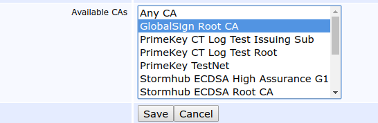 3. In the Available  CAs list, select the CA that is going to sign the CSR.